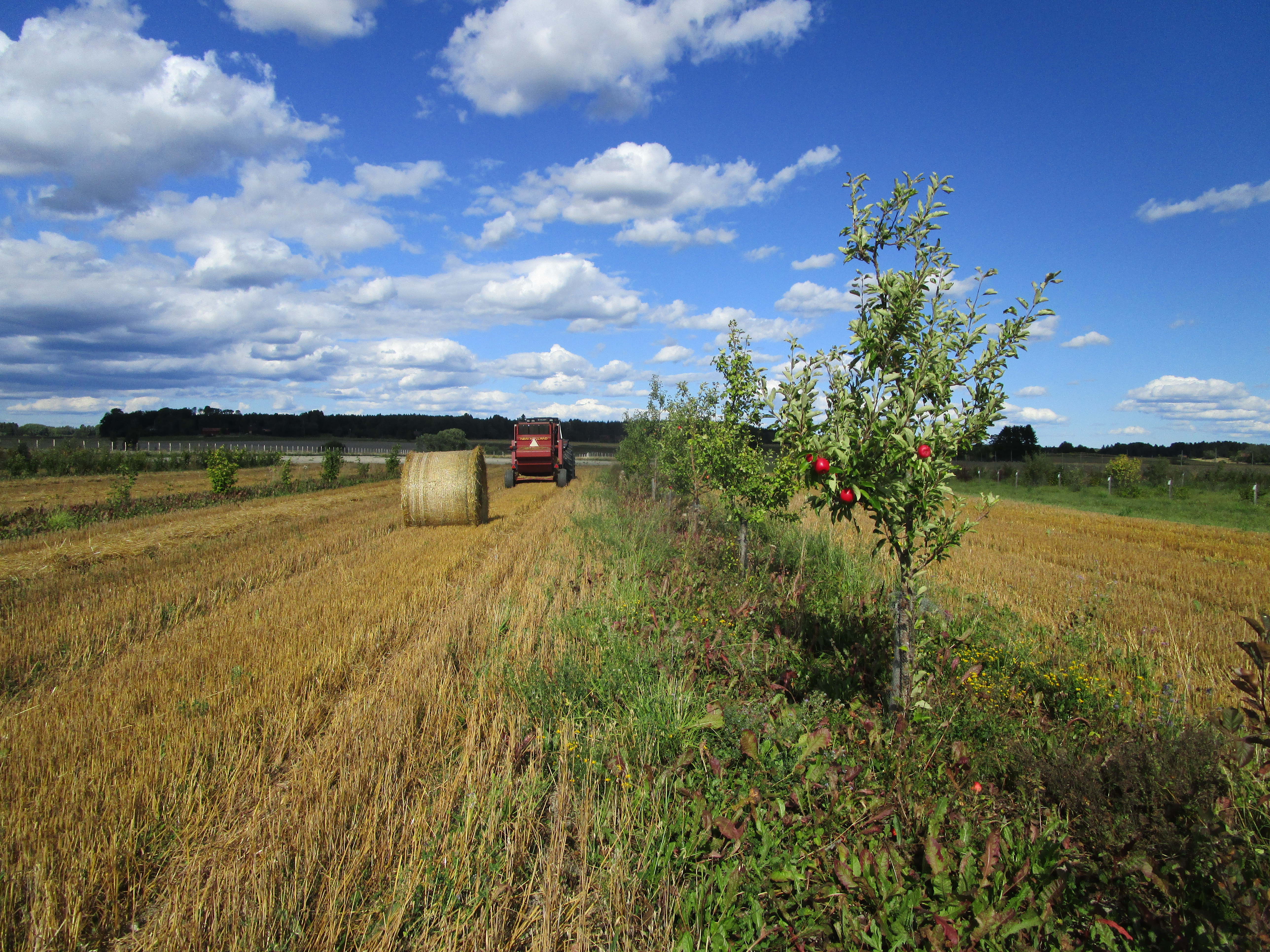 Sedan 2015 har en ny flerårig gröda gjort entré på 2 hektar i växtföljden. Det är dock ingen flerårig vall som man kanske kan tro utan här är det frågan om fruktträd som odlas i alléer på åkermarken, ett s.k. agroforestrysystem. Själva metoden är dock på intet sätt ny. Genom att studera gamla flygfoton slås man av den rika förekomsten av trädalléer i odlingslandskapet. Pilevallarna på Söderslätt är en landskapsbild som lever kvar in i våra dagar.