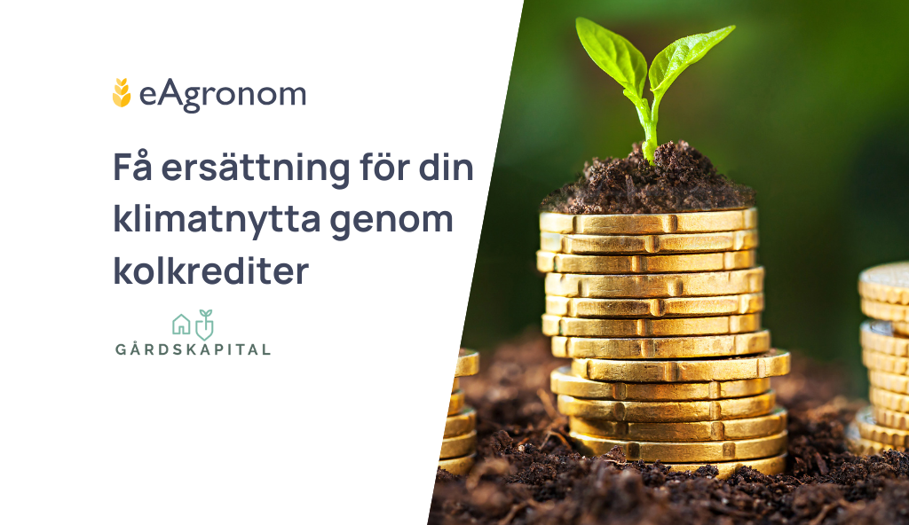 I eAgronoms kolkreditprogram representerar en kolkredit ett certifikat på att 1 ton koldioxid lagrats in i marken i form av organiskt material, eller med andra ord mull, från de växtrester som produceras vid växtodling. Inlagringen beräknas utifrån bl.a. jordprover, sattelitdata, samt odlingsdata från gården. Exempel på data som används är artval av mellangrödor, bearbetning och mängd organisk- respektive konstgödning samt andra historiska odlingsdata. Marknadspriset för denna klass av kolkredit bedöms idag ligga på 40 euro, med en stigande trend. Via eAgronom säljs kolkrediterna i princip till högstbjudande på marknaden, men för att skapa en extra trygghet garanteras också ett lägsta golvpris på 30 euro per kolkredit. Antalet kolkrediter som går att generera varierar men ofta rör det sig om ca 1-1,5 kolkrediter/ha och år på den areal som mellangrödor odlas på. När kolkrediterna sen säljs ger detta ett värdefullt tillskott till sista raden.