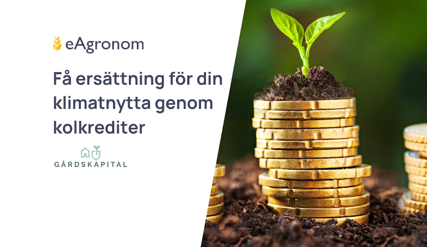eAgronom är ett företag som är baserat i Estland men är idag verksamma i stora delar av Europa. Bland annat har de utvecklat ett program för kolkrediter och i skrivande stund är över 700 000 ha anslutna. Konceptet går ut på att din kolinlagring certifieras enligt Verras internationella standard, och dessa certifikat på din inlagring, så kallade kolkrediter, kan därefter säljas vidare till köpare.