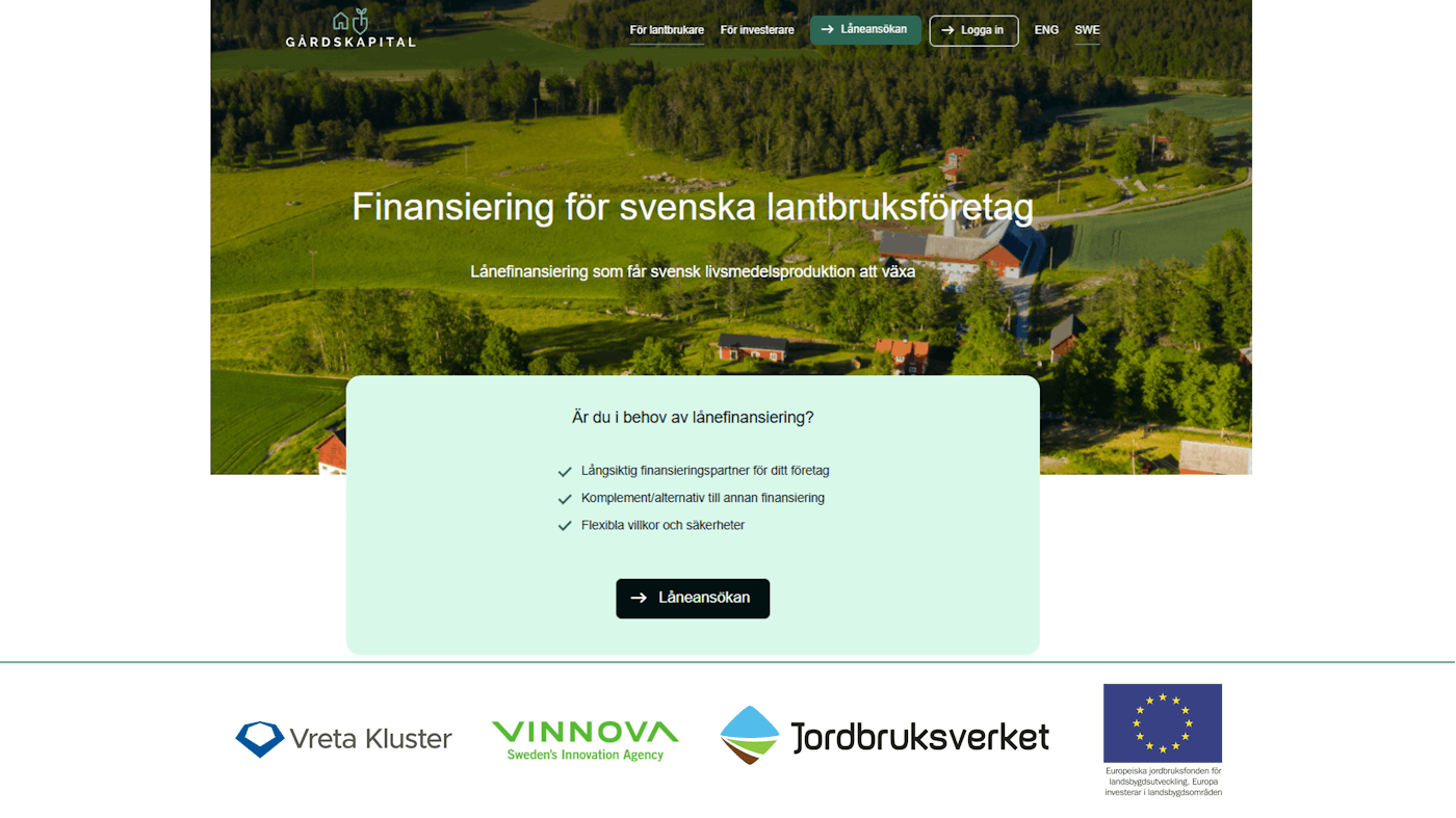 Jordbruksverket har bidragit med finansiering för utvecklingen av Gårdskapitals låneplattform