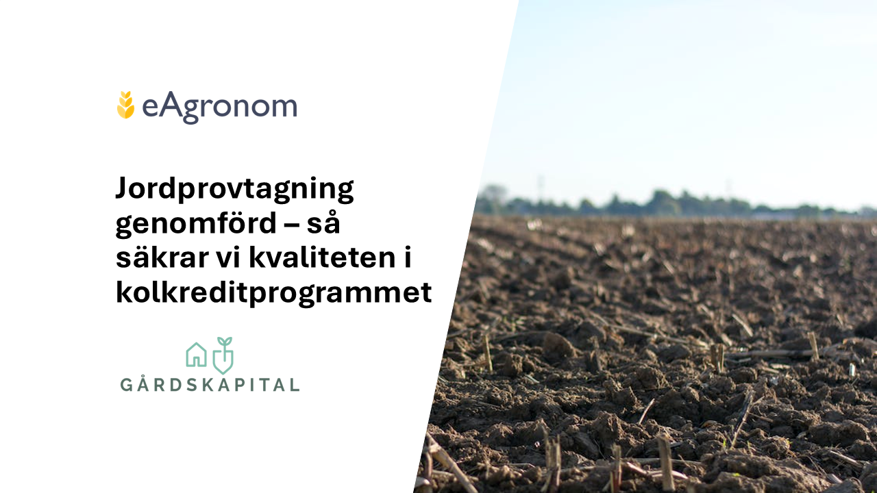 eAgronoms kolkreditprogram, som drivs av eAgronom i partnerskap med Gårdskapital, är registrerat hos Verra under metodiken VM0042, som ställer tydliga krav på mätning, rapportering och verifiering av kolinlagring i jordbruksmark. Jordprover är en del av detta och tas i femårscykler.